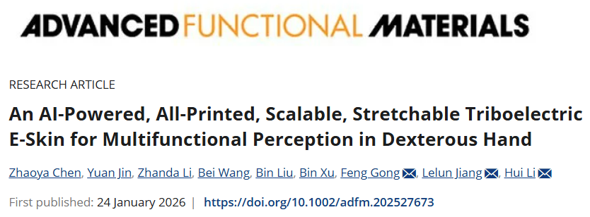 电子皮肤(E-skin)是实现灵巧手触觉感知的关键技术,架起了人机交互与智能响应之间的桥梁,其多功能感知、决策与交互控制的高集成能力,是实现灵巧手类人操作的核心前提。然而,现有电子皮肤普遍存在功能单一、制造工艺复杂、规模化生产难等技术瓶颈,难以满足医疗手术、工业操控等领域对高精度、自适应交互的严苛需求。