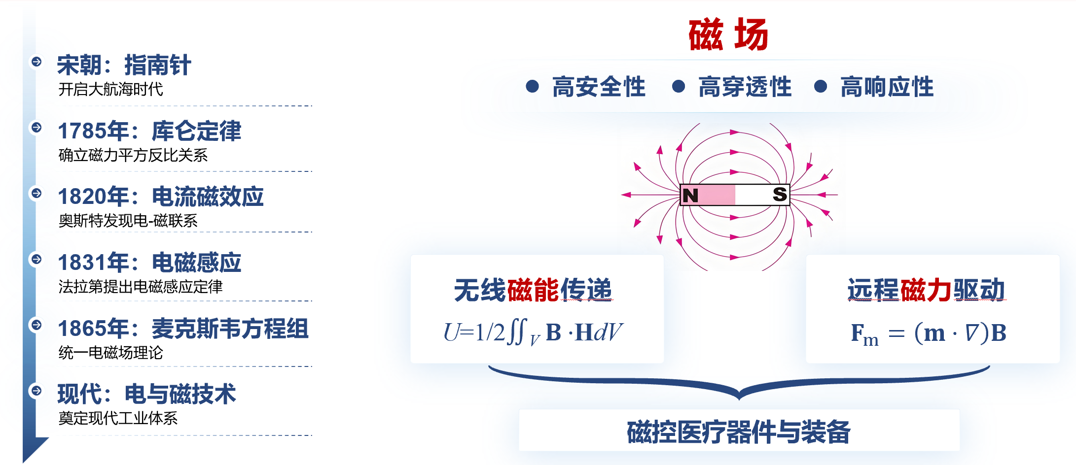 课题组立足医工交叉前沿,依托磁场穿透性与无线操控优势,构建磁驱器件磁控装备医学应用一体化研究体系。通过磁控4D打印、折纸及自组装等智造技术,重点研发磁控微纳/软体机器人、植入式发电与诊疗器件等;集成开发介入式磁控手术导航系统、磁控3D定位系统、内窥镜胶囊系统等装备,攻克核心技术瓶颈,加速临床转化与产业化,为微创诊疗提供精准化、智能化解决方案。