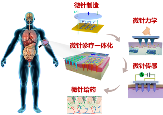 课题组立足于医学与微纳制造多/交叉学科,致力于微针阵列结构与器件智造研究,系统构建微针阵列结构主动制造微针阵列穿刺力学优化微针阵列诊疗(传感与给药)器件研制可穿戴电子设备开发的全链条研究体系,解决微针制造、微针穿刺、微针传感、微针给药、微针诊疗一体化等领域的科学问题/技术瓶颈,实现临床转化。