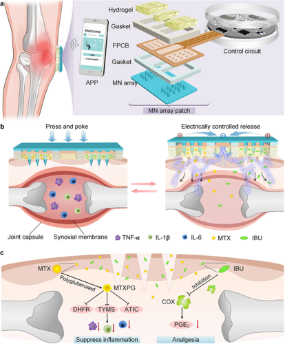 A Wearable Electro-Controlled Microneedle Device for Synergistic Rheumatoid Arthritis Therapy