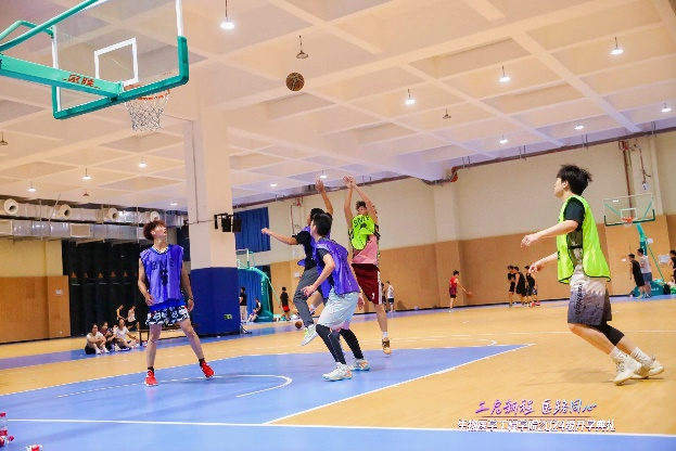 新生篮球交流赛在深圳校区体育馆内篮球场激烈展开。