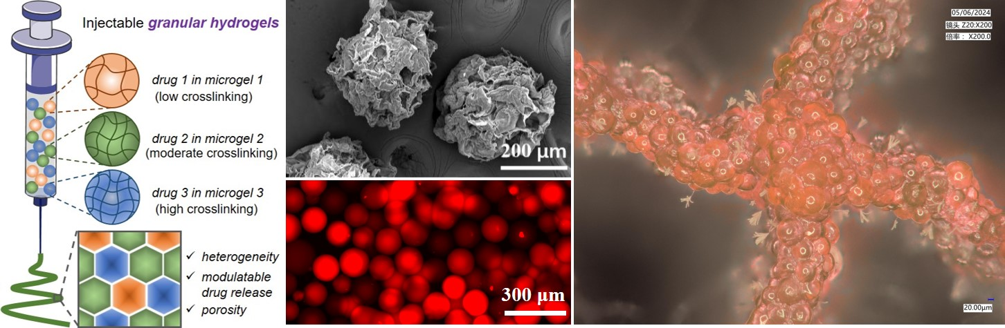 设计和构建微流控芯片平台,用于可注射、功能可模块化定制的水凝胶微球(或称微凝胶)的高通量和高稳定性生产;拓展功能化微凝胶的临床应用场景,如清除毒素、缓解炎症、修复伤口、治疗慢病等。