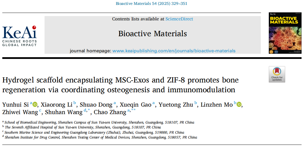 Bioactive Materials | TOMID团队张超课题组在水凝胶支架封装MSC-Exos与ZIF-8以协同成骨与免疫调节促进骨再生方面发表论文